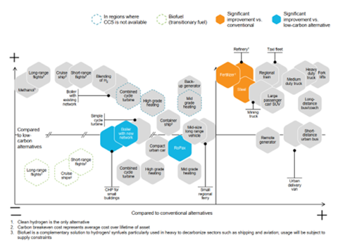 To be more competitive, we must take into account both the cost of emissions and the lower cost of producing hydrogen. This makes the latter a more viable option in industrial applications, such as the manufacture of steel or fertilizers, or in refineries, where the cost of carbon emissions could come to around 100 American dollars per ton of CO2 equivalent. In other sectors such as aviation, marine transport and heating, hydrogen will have to compete with other decarbonization alternatives, such as biofuels.