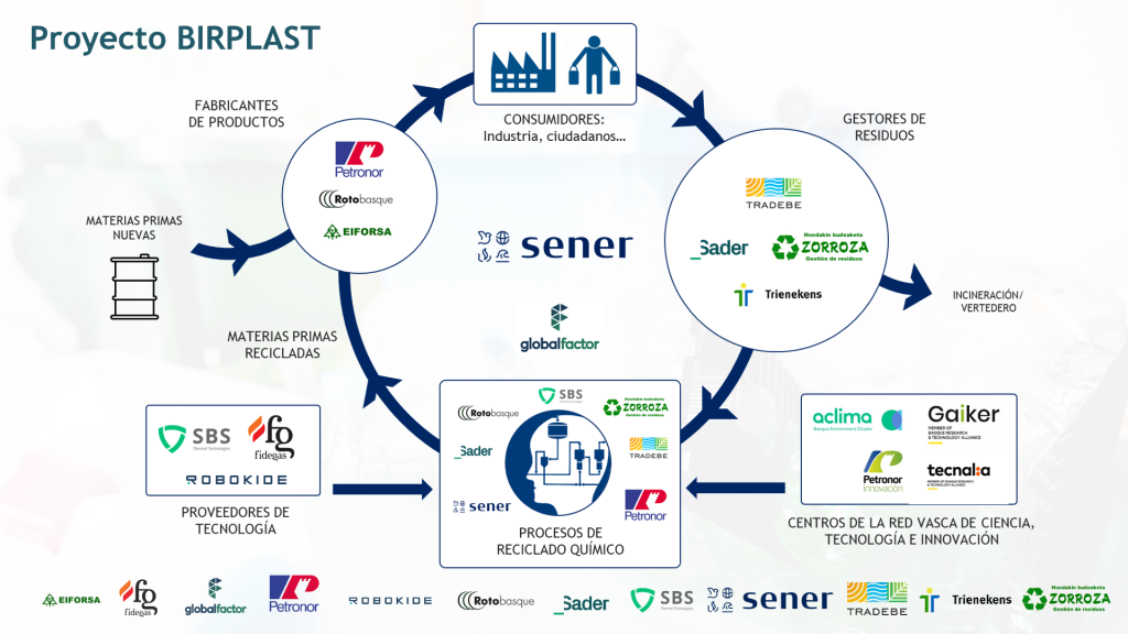 Birplast is an industrial research project aimed at developing technologies to deliver products with a lower carbon footprint and support the recovery of plastic waste through circular economy processes. It plays a key role in integrating the value chain from waste to final product, while also contributing to the decarbonisation of today’s economy and advancing the Sustainable Development Goals and the 2030 Agenda.