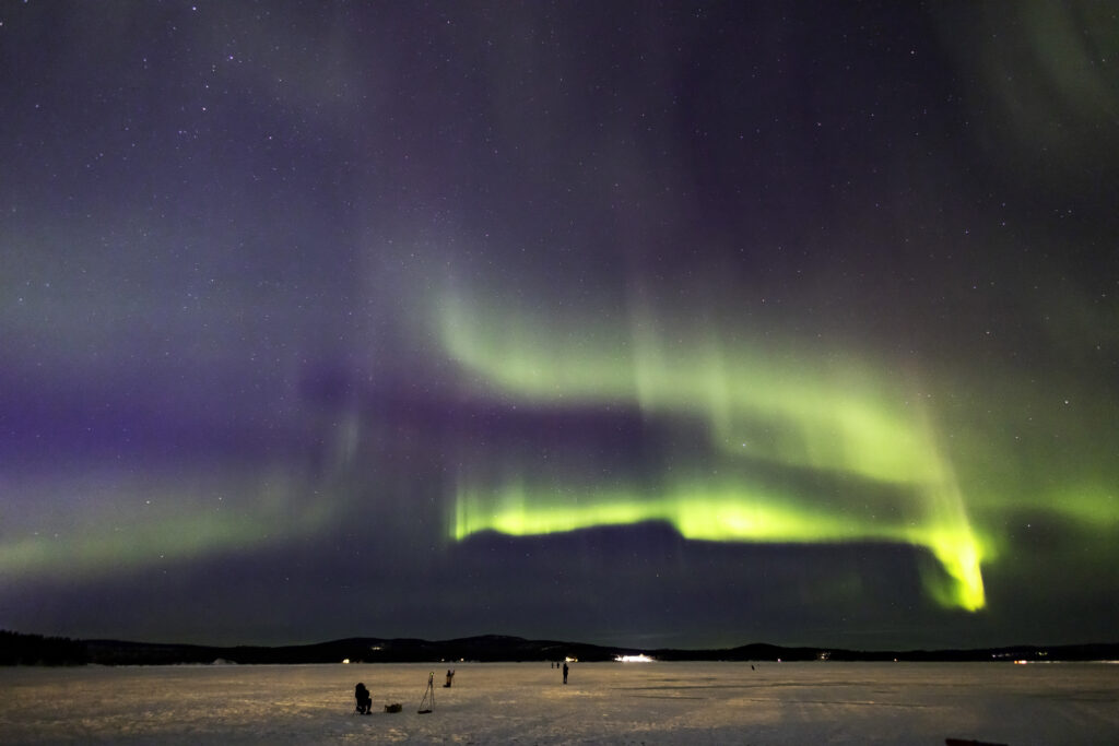 Fotos tomadas por el autor, desde el lago Inari (Finlandia) con cámara Canon R5 sobre mini-trípode; objetivos Canon RF 16mm f/2.8 STM y TTArtisan 11mm Fisheye f/2.8. Exposiciones 2-4 segundos a ISO 1600 – 6400.
