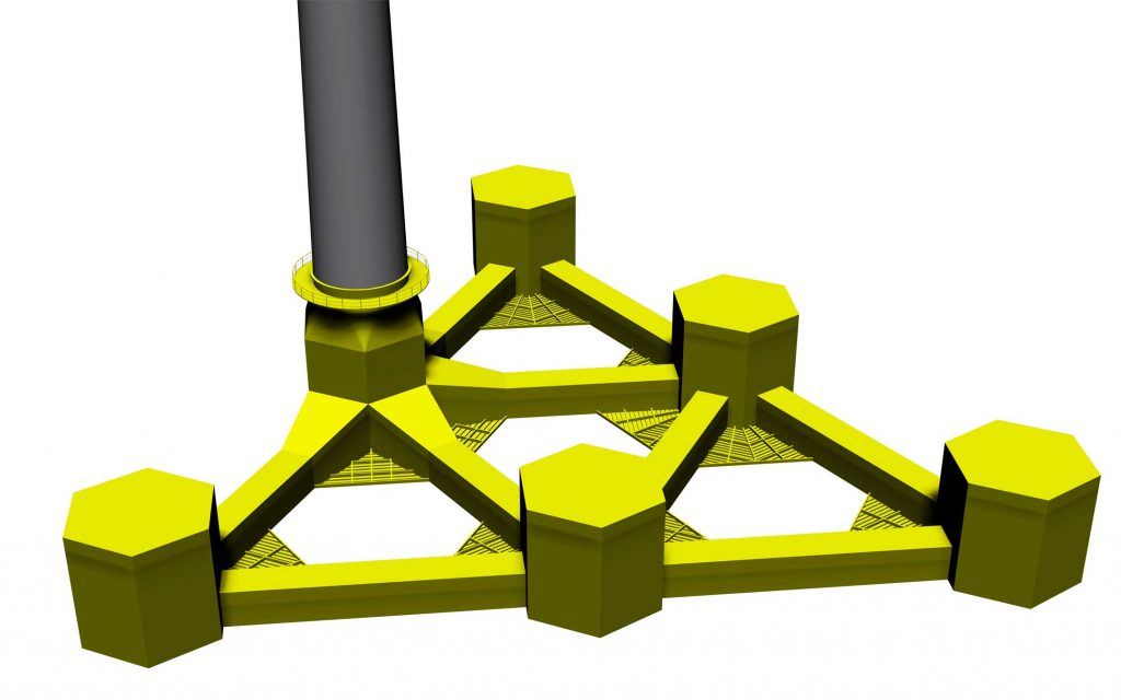 Este concepto ha nacido después de una larga evaluación de alternativas y análisis del mercado eólico marino, llegando al diseño de un innovador y rentable concepto de cimentación flotante. La búsqueda de un diseño optimizado que permita la fabricación en serie del mismo con costes reducidos pretende satisfacer las necesidades de un mercado que está ya demandando este tipo de estructuras para el corto-medio plazo.