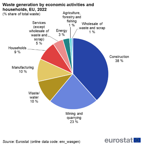 Como ciudadanos tendemos a pensar que los residuos que generamos en casa son los únicos que existen, pero éstos representan únicamente un 9 % de todos los residuos generados en la Unión Europea. Es por esto por lo que hay que poner el foco, no solo en los residuos domésticos, sino también en los generados por la actividad industrial. Éstos suponen una inmensa fuente de recursos y materias primas a la espera de ser transformados para su reincorporación al ciclo económico.
