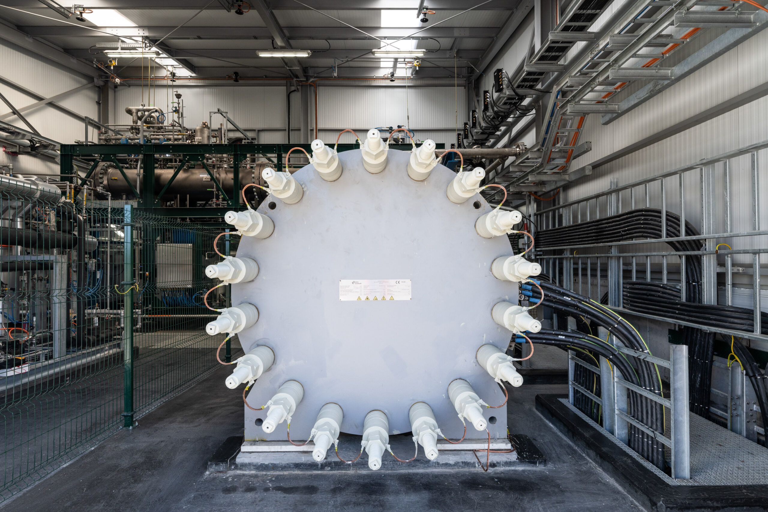 Hemos realizado el contrato EPC (ingeniería, compra y construcción) de una planta de electrólisis con una capacidad de 2,5 MW para Repsol. El electrolizador, que está ubicado en el complejo industrial de Petronor en Muskiz (España) con el objetivo de surtir al Corredor Vasco del Hidrógeno, permitió generar el primer hidrógeno renovable del País Vasco a finales de 2023.