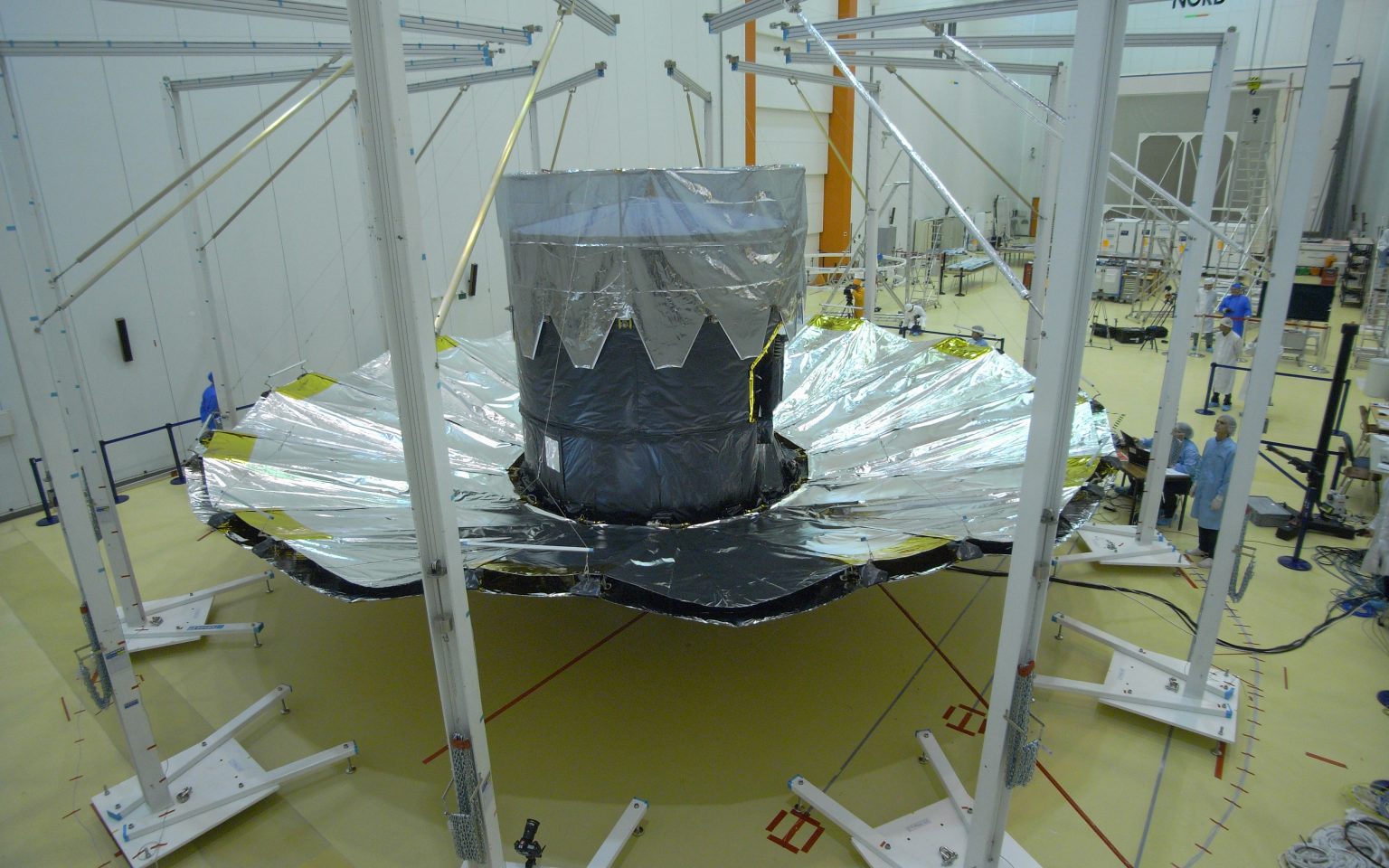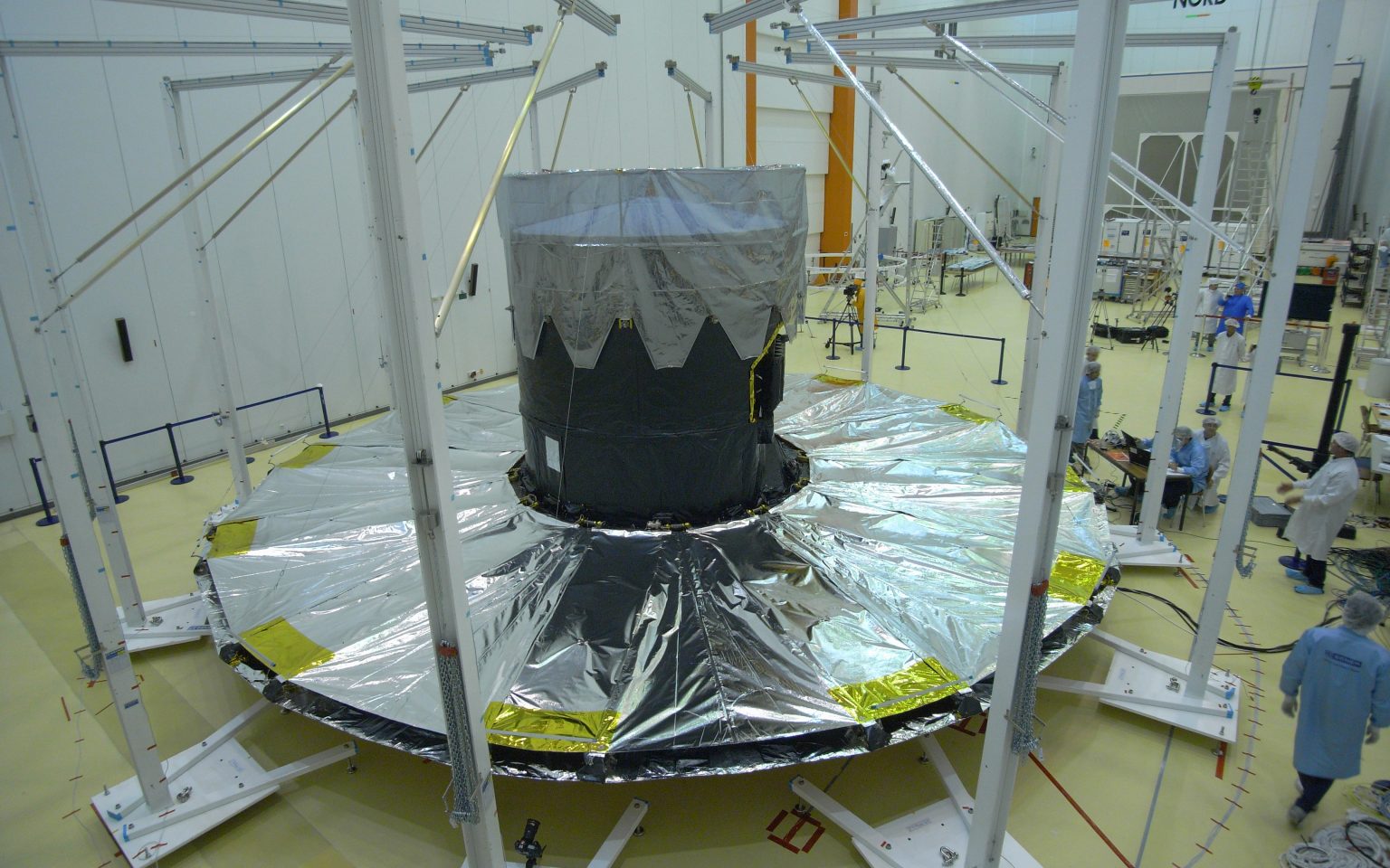 - El parasol proporciona un aislamiento térmico de la radiación solar de varias órdenes de magnitud. De los 1400 w/m2 de radiación solar llega al telescopio 5 w/m2 con una uniformidad de 20 miliwatios/m2.