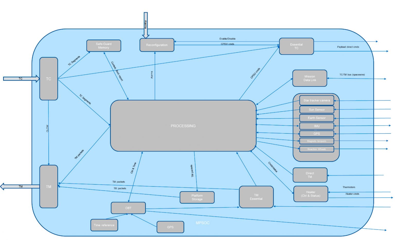 La tecnología MPSoC permite una capacidad computacional aumentada gracias a la integración de un mayor número núcleos procesadores, funciones de computación que mejoran drásticamente los tiempos de ejecución de los procesos y el uso de tecnologías más avanzadas que permiten mayores frecuencias de reloj. Considerando un componente MPSoC como un entrono híbrido, es necesario combinar los ciclos de desarrollo SW y FW dentro de un nuevo paradigma conjunto de tal manera que se obtengan capacidades de proceso capaces de cubrir las necesidades que nos encontramos en las aplicaciones y equipos del llamado New Space, y al mismo tiempo tomar ventaja de las características físicas de la electrónica que nos permite una reducción importante en peso y tamaño y también en los costes. El objetivo es desarrollar una plataforma de ejecución multipropósito que se base en una infraestructura estable que permita un crecimiento orgánico con la capacidad de añadir sobre el sistema básico diferentes tipos de aplicaciones SW de propósito específico. Otra de las innovaciones de MFOC es diseñar una metodología basada en MBSE, desarrollado ya por la industria para sistemas complejos en entornos de tierra, a un sistema MPSoC de vuelo/Espacio complejo.