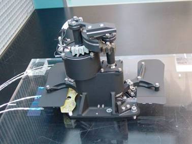 El mecanismo consiste en dos ejes rotatorios conducidos por un motor paso a paso con una transmisión mediante engranajes. Las posiciones extremas son detectadas por medio de conmutadores magnéticos.