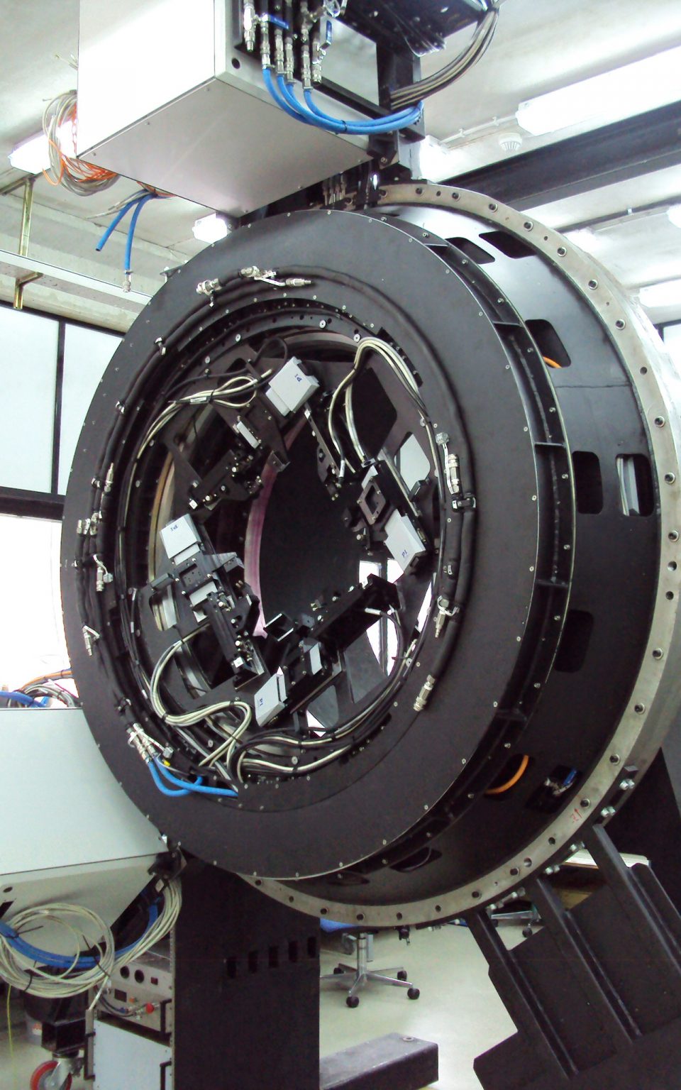 - Un co-rotador, que incluye un cojinete de precisión de 1,1 m, un dispositivo de torsión y un codificador angular multi-cabeza que permite el seguimiento angular con una precisión mejor que 10 arcosegundos de funcionamiento de medición estática (rms).